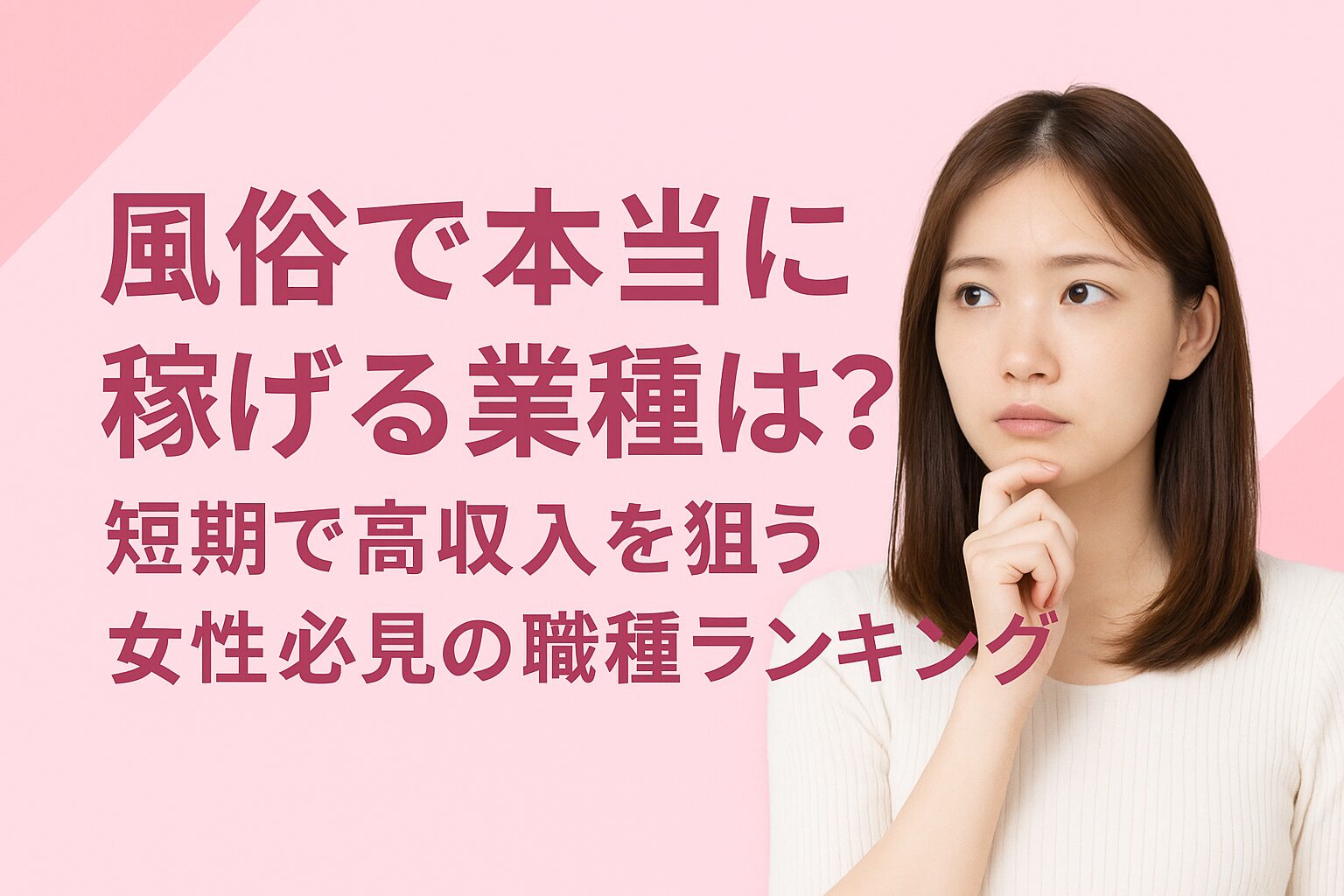 そんな失敗を避けるために、風俗業界の全業種をわかりやすく紹介しつつ、「本当に稼げる仕事」をランキング形式で解説していきます。さらに、自分に合った職種の見極め方や体験入店の流れ、高収入を得るためのコツまで、実践的な情報もお届けします。