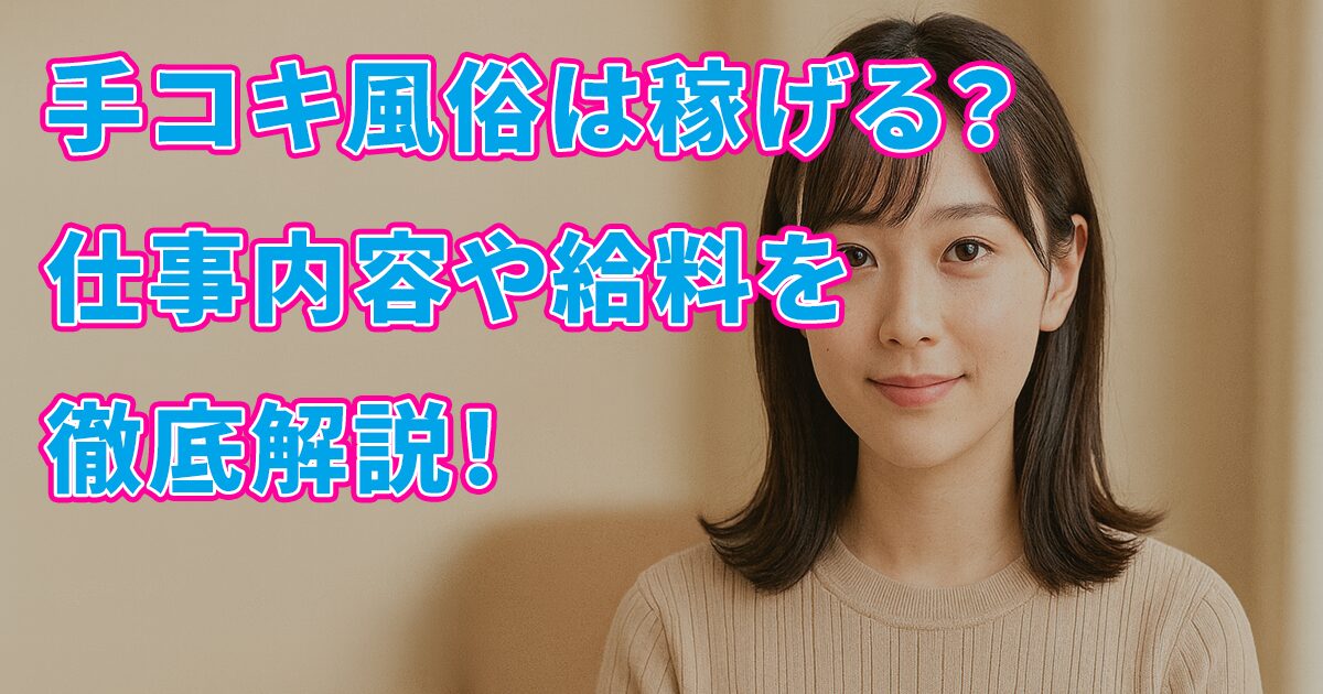 体への負担が少なく、性感サービスもないことから、風俗初心者の女性に人気なのが“手コキ”のお仕事です。「稼げるの?」「実際の仕事内容は?」と不安な方のために、給料の相場から面接・体験入店の流れ、稼げるテクニックまでをわかりやすく紹介します。